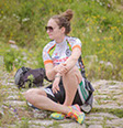 夏、元気一杯に水遊びする人と動物たち