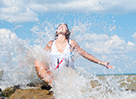 冷え冷えのスイカも波に乗って大はしゃぎ。